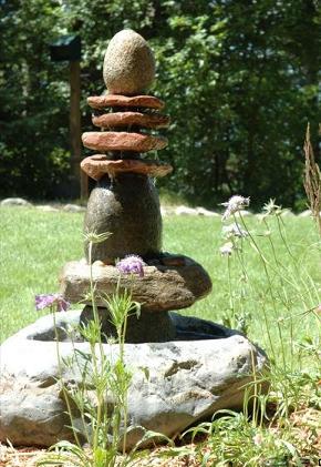 This fountain is constructed from all 100% natural stones. It has multiple tiers that allow water to cascade from one level to the next, down into a hand-carved triangular shaped basin. The pump is conveniently concealed with the basin. There is a drainage plug for easy storage and winterization.